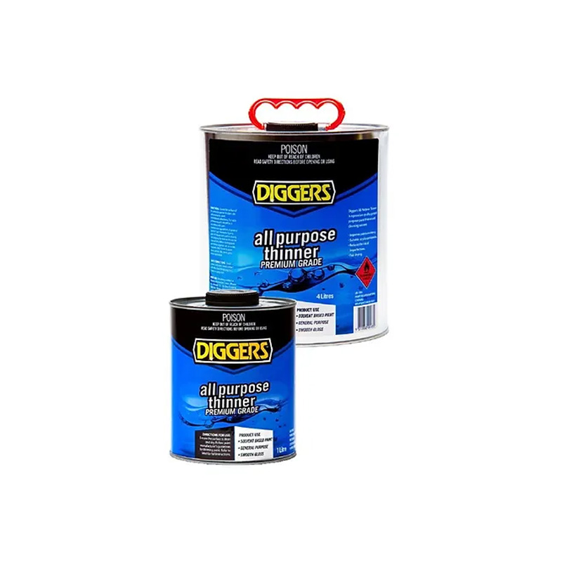 DIGGERS All Purpose Thinners (4L) is a high-quality solvent blend formulated to thin oil-based paints, clean brushes, and remove grease and tar. Ideal for industrial and domestic applications, it evaporates quickly, leaving minimal residue.