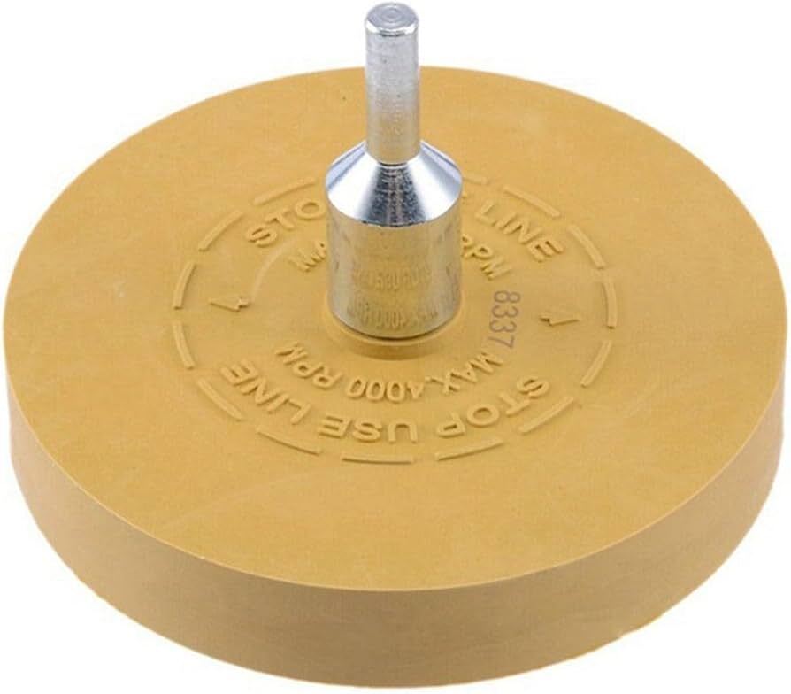 GPI?s Stripe Remover Tool features a high-quality caramel rubber wheel with arbor for removing decals, stickers, and vinyl without damaging paint. Suitable for automotive and signage applications. Easy to use with power drills or rotary tools